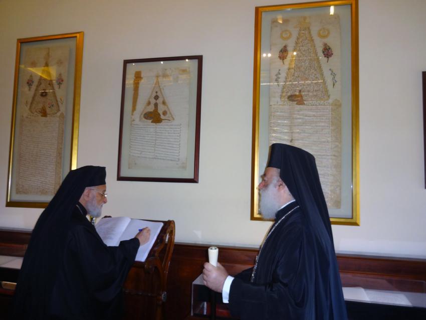 Μετά την ανταλλαγή ευχών και αναμνηστικών δώρων, οι επισκέπτες ξεναγήθησαν στους χώρους του Αρχαιολογικού Μουσείου και του Πατριαρχικού Σκευοφυλακίου.