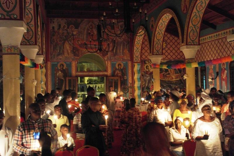 Με κατάνυξη και πνευματική ευφορία εορτάσθηκε η Ανάσταση του Θεανθρώπου στη πρωτεύουσα Μπραζαβίλ του Κονγκό. Ο Θεοφιλ. Επίσκοπος Μπραζαβίλ και Γκαμπόν κ.Παντελεήμων ετέλεσε τα μεσάνυχτα την Θεία Λειτουργία στον εορτάζοντα Ιερό Ναό Αναστάσεως του Κυρίου.
