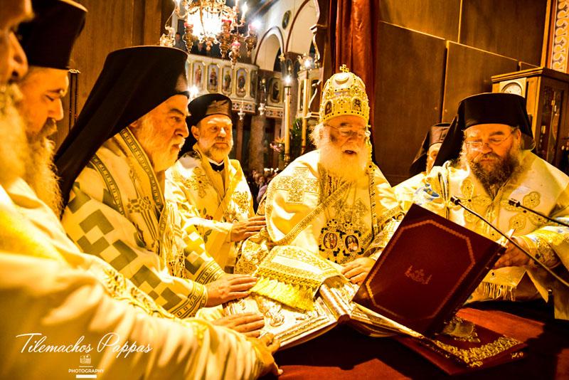 «Προτρέπει η Διδαχή των Δώδεκα Αποστόλων: «Χειροτονήσατε οὖν ἑαυτοῖς ἐπισκόπους καὶ διακόνους ἀξίους τοῦ κυρίου, ἄνδρας πραεῖς καὶ ἀφιλαργύρους καὶ ἀληθεῖς καὶ δεδοκιμασμένους• ὑμῖν γὰρ λειτουργοῦσι καὶ αὐτοὶ τὴν λειτουργίαν τῶν προφητῶν καὶ διδασκάλων» (Διδαχή, 15, 1). Ακριβώς την χειροτονία τέτοιου νέου επισκόπου προσερχόμεθα να τελέσουμε σήμερα, του εψηφισμένου Επισκόπου της νεοσύστατης Επισκοπής Αρούσας και Κεντρικής Τανζανίας κ. Αγαθονίκου, επιβραβεύοντας τους κόπους και την πολυποίκιλη διακονία του στην Εκκλησία του Αγίου και Ευαγγελιστού Μάρκου.
