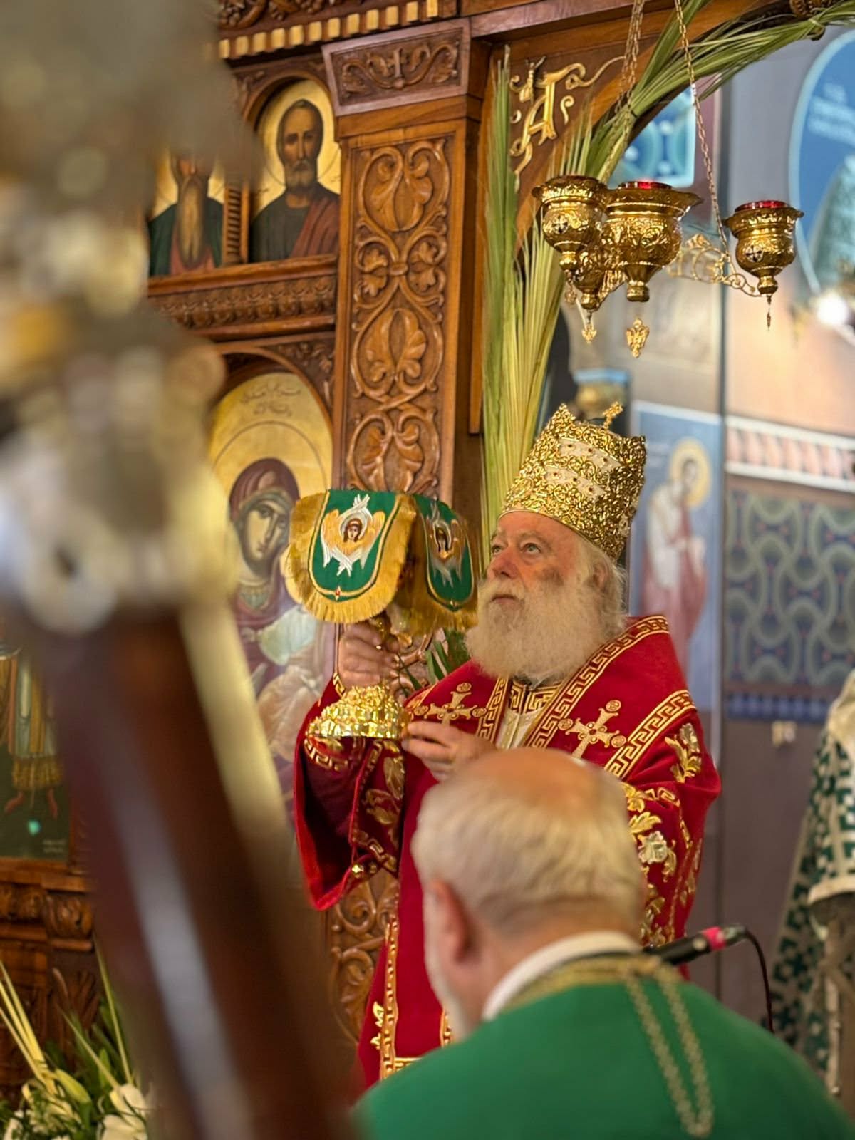 «Χαίρομαι που βρίσκομαι για ακόμη μία φορά ανάμεσά σας, σε μια ενορία ζωντανή, πλημμυρισμένη από νέους ανθρώπους, που αποτελούν την ελπίδα και το μέλλον της Εκκλησίας μας. Βλέποντάς σας να κρατάτε τα βάια στα χέρια σας, η καρδιά μου γεμίζει συγκίνηση και ελπίδα. Εσείς είστε η μαρτυρία ότι η Εκκλησία πορεύεται πάντοτε προς το αύριο, φωτισμένη από το φως της Αναστάσεως», ανέφερε χαρακτηριστικώς.