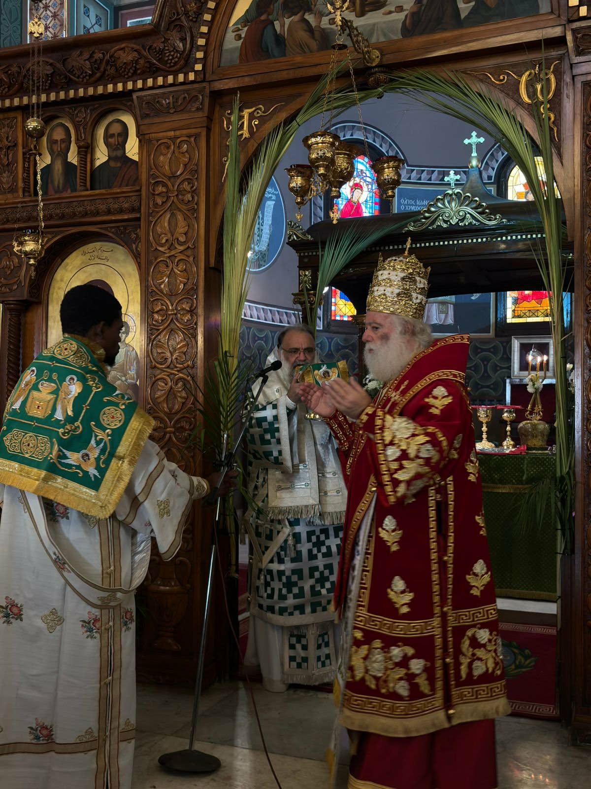 Με λαμπρότητα εορτάσθηκε πανηγυρικά η Κυριακή των Βαΐων, σήμερα 5 Απριλίου ε.έ., στον Ιερό Ναό των Παμμεγίστων Ταξιαρχών, στη συνοικία Ντάχερ του Καΐρου, προεξάρχοντος της Θείας Λειτουργίας του Μακαριωτάτου Πάπα και Πατριάρχου Αλεξανδρείας και πάσης Αφρικής κ.κ. Θεοδώρου Β΄.