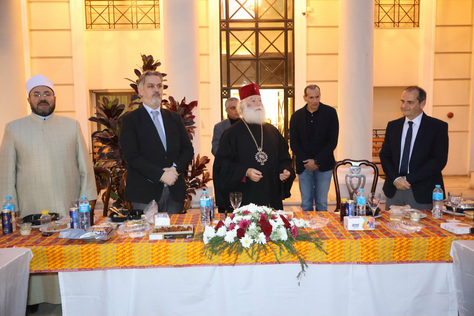 Το Ιφτάρ πραγματοποιήθηκε στον προαύλιο χώρο του Πατριαρχείου στην Αλεξάνδρεια, παρουσία του Εξοχωτάτου Γενικού Προξένου της Ελλάδος στην Αλεξάνδρεια κ. Ιωάννη Πυργάκη, του Προέδρου της Ελληνικής Κοινότητας Αλεξανδρείας κ. Ανδρέα Βαφειάδη, του Σοφολογιωτάτου εκπροσώπου του Μεγάλου Σεΐχη του Αλ-Άζχαρ στην Αλεξάνδρεια Dr. Ibrahim Al-Jamal, του Θεοφιλεστάτου Επισκόπου Μαρεώτιδος κ. Δαμασκηνού, Πατριαρχικού Επιτρόπου Αλεξανδρείας, καθώς και των υπευθύνων της κατασκευαστικής εταιρείας Rowad, η οποία έχει αναλάβει την υλοποίηση του έργου της αναστήλωσης του Ιερού Ναού.