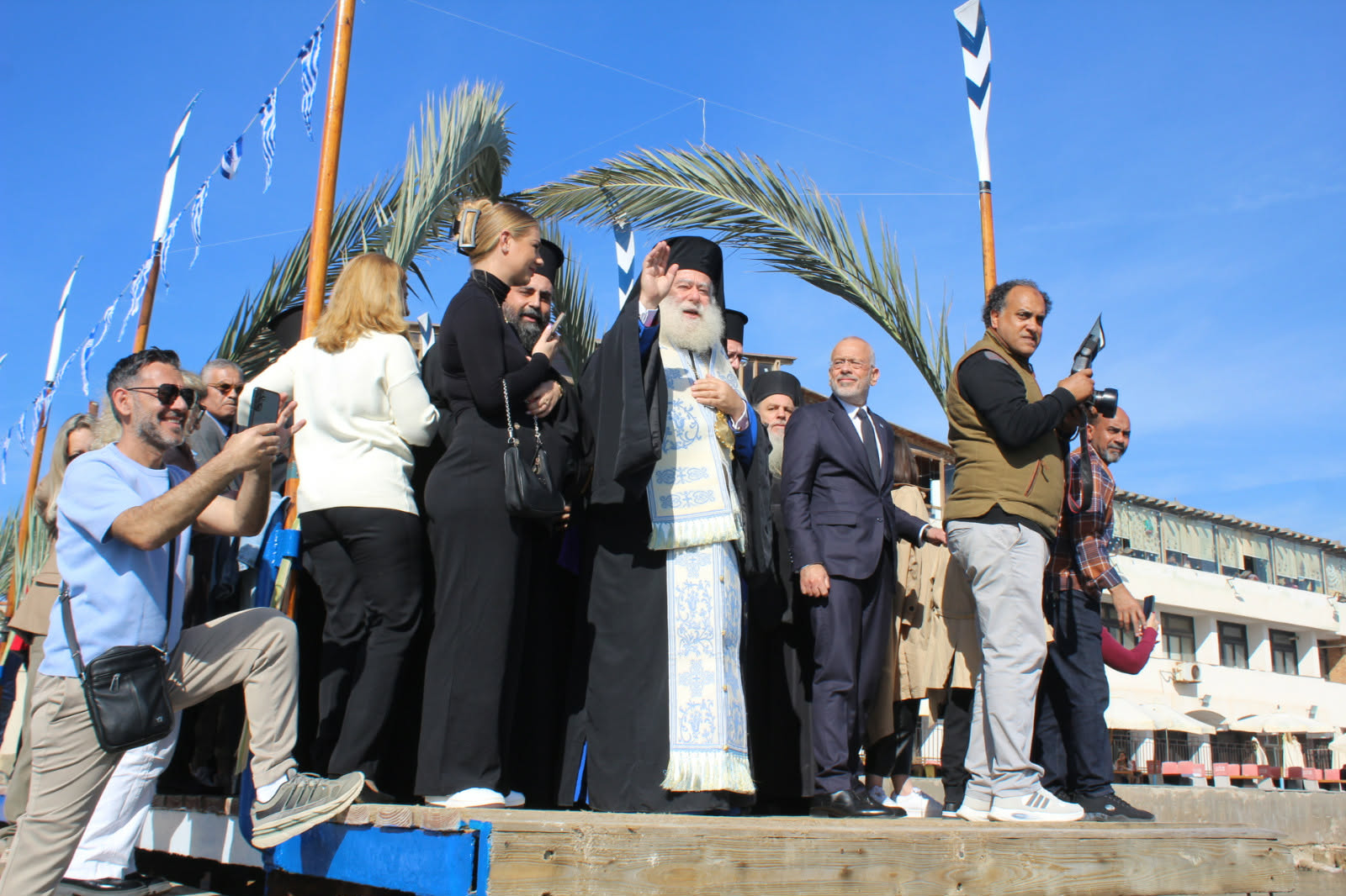 Μετά τήν κατάδυση του Τιμίου Σταυρού, η Πρόεδρος του Ελληνικού Ναυτικού Ομίλου Αλεξανδρείας (ΕΝΟΑ), κα Ειρήνη-Λιλίκα Θλιβίτου, στην επίσημη προσφώνησή της εξέφρασε τις θερμές και ειλικρινείς της ευχαριστίες προς τον Μακαριώτατο Πατριάρχη για τη σταθερή του παρουσία και την πατρική του μέριμνα, υπογραμμίζοντας τη βαθειά σημασία της συνέχισης της ιερής αυτής παραδόσεως, με τον Αγιασμό των υδάτων της θάλασσας της Μεσογείου από το ιστορικό αυτό σημείο της Αλεξανδρείας, όπου η πίστη συναντά την ιστορική μνήμη του Ελληνισμού.
