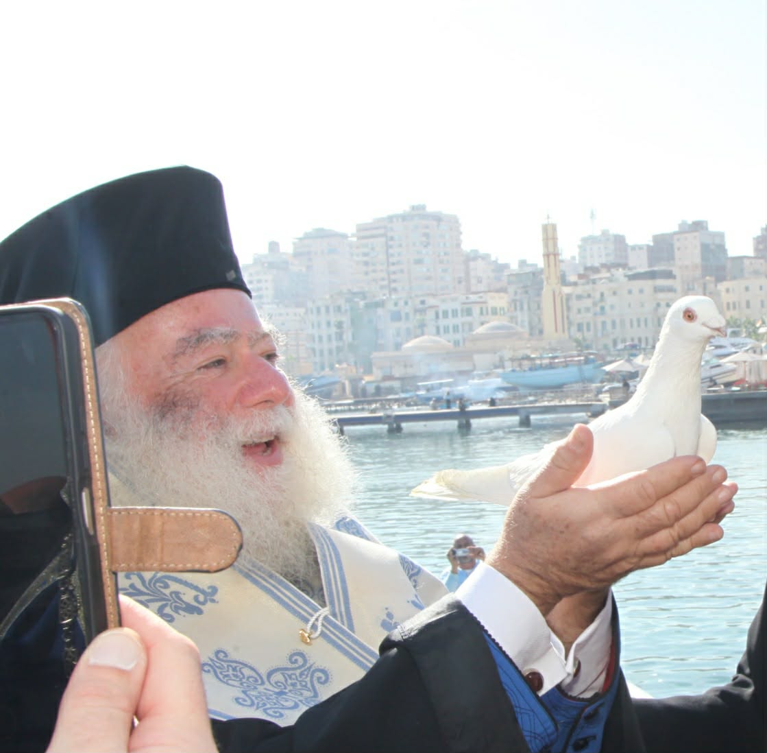 Ο Αγιασμός των Υδάτων τελέσθηκε σε σημείο ιδιαίτερης ιστορικής και συμβολικής σημασίας, καθώς λίγα μόλις μέτρα από τον Ελληνικό Ναυτικό Όμιλο Αλεξανδρείας υψωνόταν κατά την αρχαιότητα ο Φάρος της Αλεξανδρείας, το παγκόσμιο σύμβολο φωτός, προσανατολισμού και ελπίδας. Στο ίδιο αυτό θαλάσσιο μέτωπο, όπου επί αιώνες οι λαοί της Μεσογείου αναζητούσαν φως και ασφάλεια, η Εκκλησία της Αλεξανδρείας συνεχίζει μέχρι σήμερα να αγιάζει τα ύδατα και να φωτίζει τις ψυχές όλων των ανθρώπων.