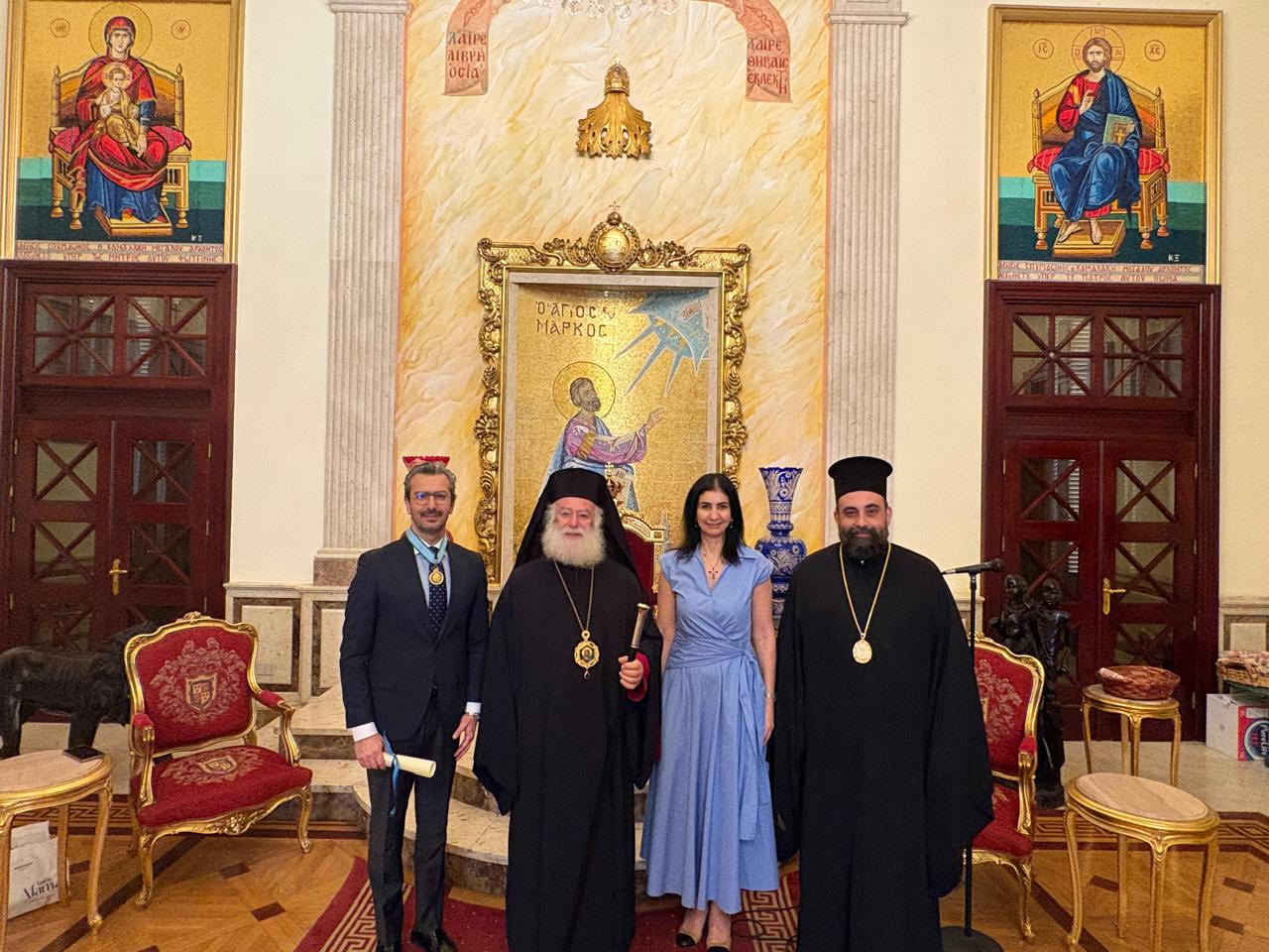 Η τελετή απονομής πραγματοποιήθηκε στην Πατριαρχική Καθέδρα στην Αλεξάνδρεια, παρουσία της συζύγου του τιμωμένου κας