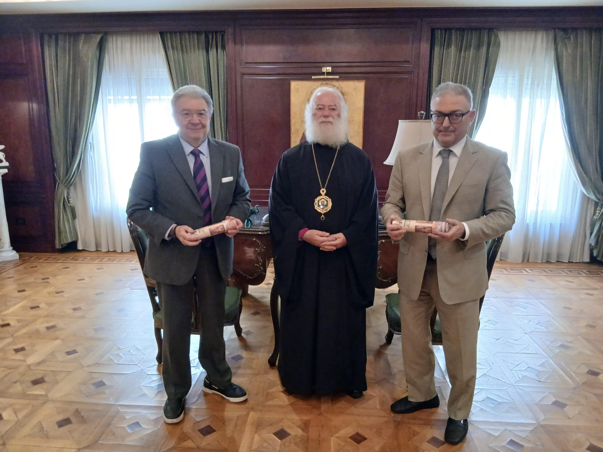 Στη συνάντηση παρευρέθηκε ο Θεοφιλέστατος Επίσκοπος Μαρεώτιδος κ. Δαμασκηνός, Πατριαρχικός Επίτροπος Αλεξανδρείας.