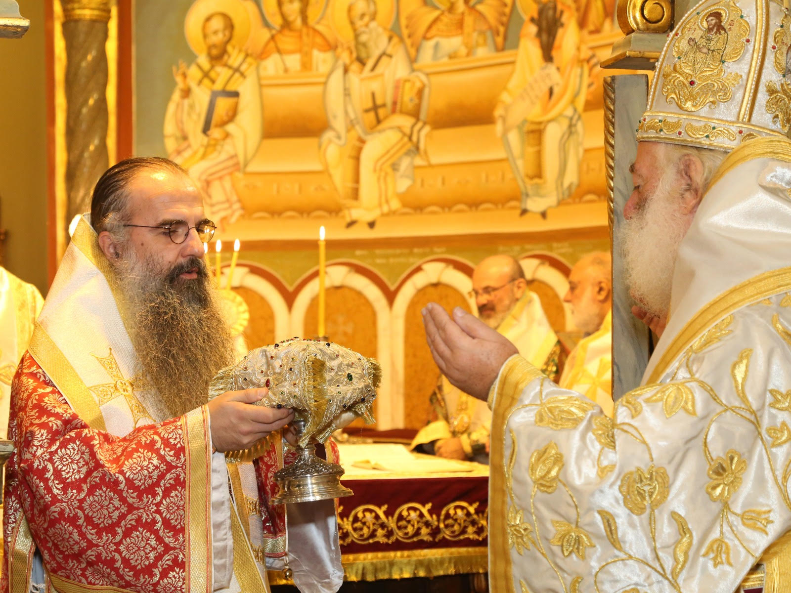 Κατακλείοντας, ο Μακαριώτατος προσέφερε στον Σεβασμιώτατο, ως ιδιαίτερη ευλογία και απτό σημείο πατρικής αγάπης, τα προσωπικά του Πατριαρχικά εγκόλπια, ώστε, όταν τα φέρει ιερουργών στην Ιερά Μονή της Αγίας Αικατερίνης του Θεοβαδίστου Όρους Σινά, να μνημονεύει στις προσευχές του το Παλαιφάτο Πατριαρχείο Αλεξανδρείας, όπως ο Κύριος, διά πρεσβειών της Αγίας Αικατερίνης, να στηρίξει και το μεγάλο ιεραποστολικό και φιλανθρωπικό έργο που επιτελείται στην Αφρικανική ήπειρο.