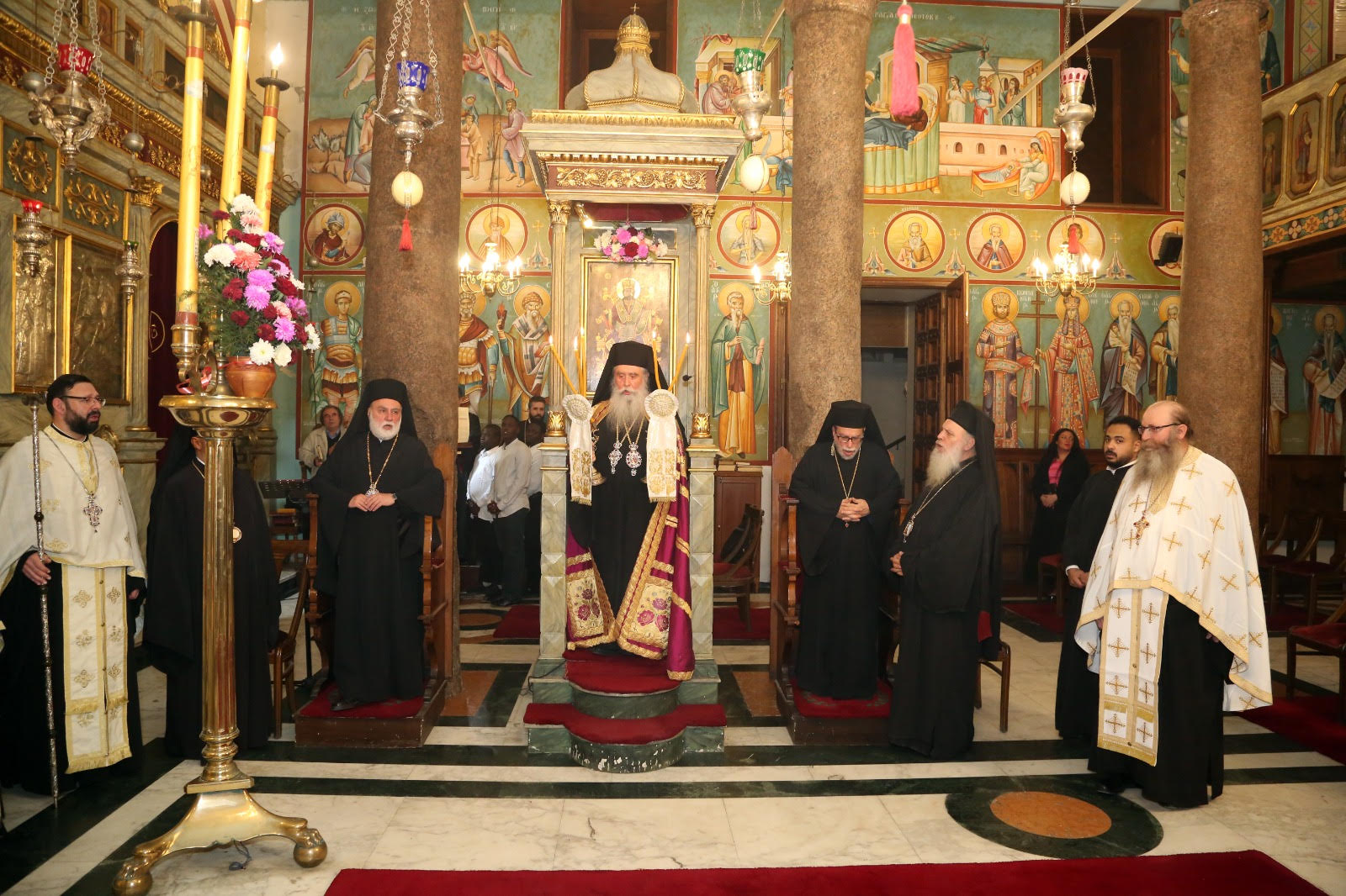 Ανήμερα της εορτής, ο Μακαριώτατος προεξήρχε της Πατριαρχικής Θείας Λειτουργίας στην Ιερά Πατριαρχική Μονή του Αγίου Σάββα του Ηγιασμένου στην Αλεξάνδρεια, πλαισιούμενος υπό του Σεβασμιωτάτου Αρχιεπισκόπου Σινά, Φαράν και Ραϊθώ κ. Συμεών, Καθηγουμένου της Ιεράς Αυτοκρατορικής και Αυτονόμου Μονής της Αγίας Αικατερίνης του Θεοβαδίστου Όρους Σινά, καθώς και των Μητροπολιτών Ερμουπόλεως κ. Νικολάου, Μέμφιδος κ. Νικοδήμου, Νουβίας κ. Σάββα, Πηλουσίου κ. Νάρκισσου και Ταμιάθεως κ. Γερμανού, και των Επισκόπων Κωνσταντινιανής κ. Κοσμά, Ιππώνος κ. Στεφάνου και Μαρεώτιδος κ. Δαμασκηνού, ενώ εκ του Ιερού Βήματος παρέστη συμπροσευχόμενος ο Θεοφιλέστατος Επίσκοπος Νιτρίας κ. Νικόδημος.