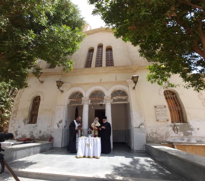 A new page in the history of the Patriarchate of Alexandria in the bustling and beautiful city of Helwan, 25 kilometers from Cairo, was blessed on Tuesday, May 19, 2020, by His Beatitude Theodoros II, Pope and Patriarch of Alexandria and All Africa when he did the service of the sanctification of water at the multi-storey building which is situated in the courtyard of St Spyridon which is loved by all Hellenes of Egypt.