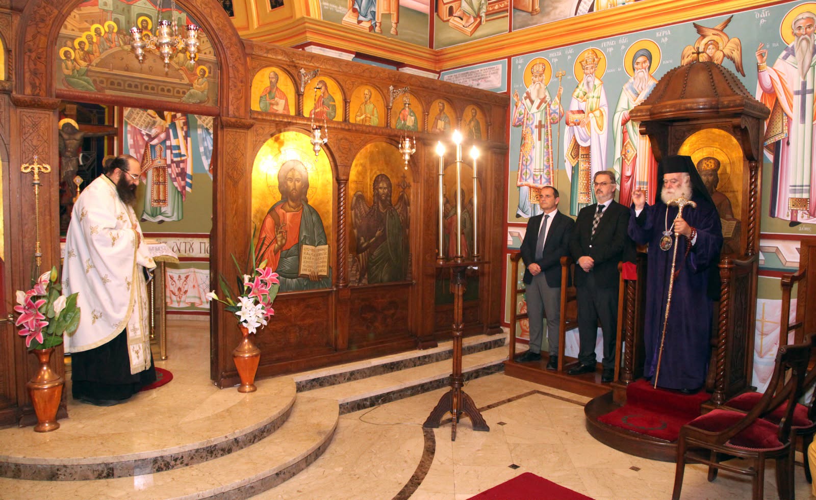 Τον Μακαριώτατο πλαισίωσαν ο Πανιερώτατος Μητροπολίτης Ταμιάθεως κ. Γερμανός και ο Θεοφιλέστατος Επίσκοπος Μαρεώτιδος κ. Δαμασκηνός.