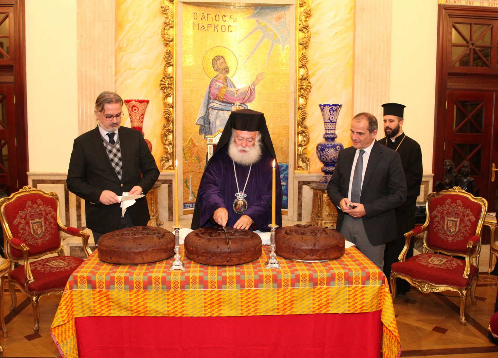 Με το πέρας του Εσπερινού ακολούθησε στην Αίθουσα Θρόνου του Πατριαρχείου η καθιερωμένη κοπή της Πρωτοχρονιάτικης Βασιλόπιτας, μέσα σε ατμόσφαιρα χαράς και πνευματικής ενότητας.