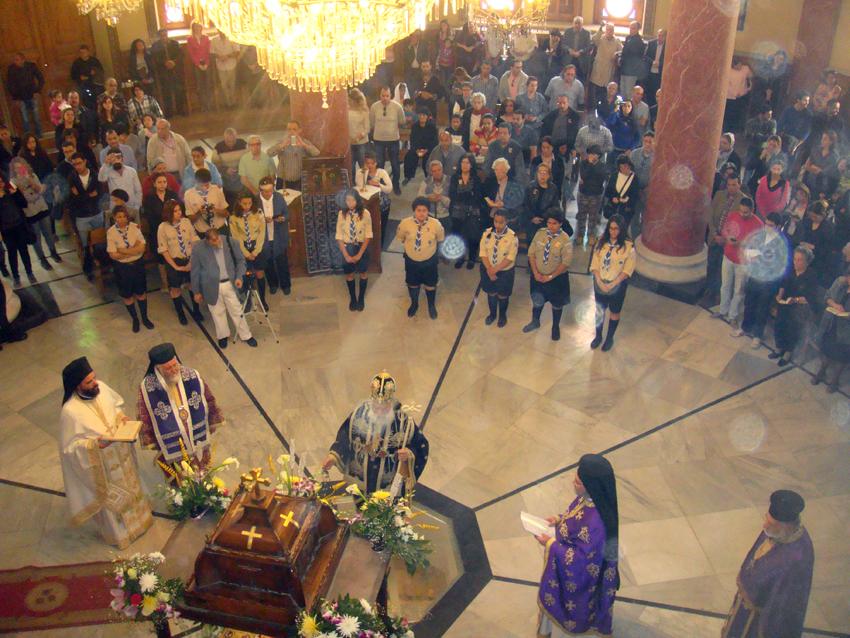 Present at the above services were the Consul General of Greece in Cairo Mrs. Komini, the Chairman and Members of the Hellenic Community, the Hellenic Scouts and crowds of faithful.