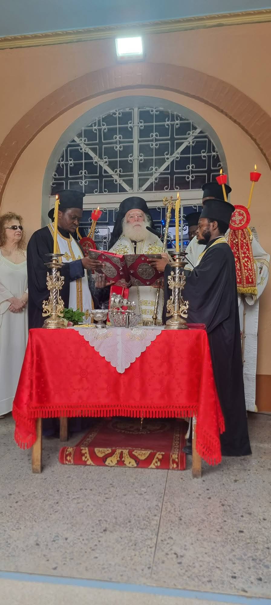 Ο Μακαριώτατος αφού εξέφρασε τη μεγάλη χαρά του για τον ανακαινισθέντα Ναό, ευχαρίστησε τον Μητροπολίτη Κινσάσας Θεοδόσιο για τον κόπο και την επιστασία του, τον Γενικό Πρόξενο κ. Γεράσιμο Ντούνη, για την δωρεά των Αγιογραφιών και τον κ. Ιωάννη Παράβολα για την καταβολή των εξόδων της ανακαίνισης του Ναού.